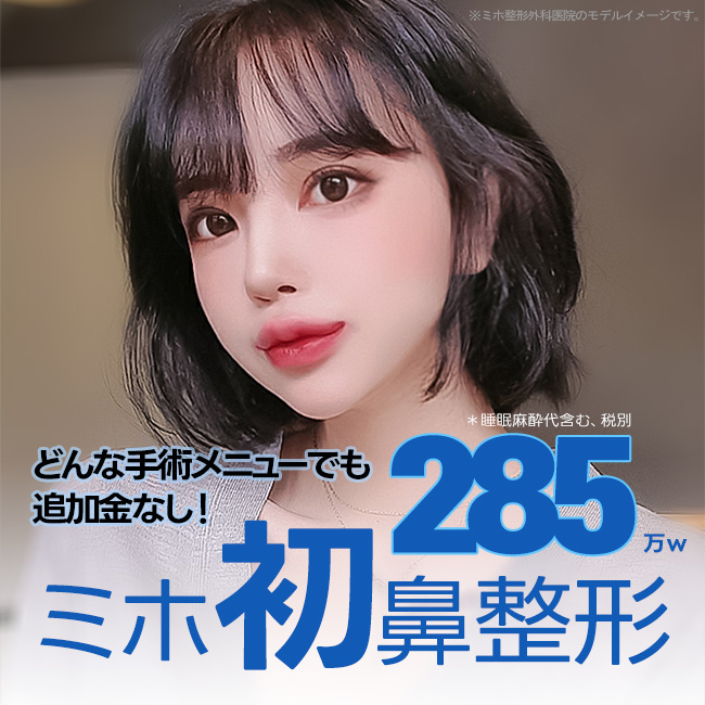 1. 初鼻整形 285万w (麻酔代含む・税別) どんなメニューでも追加金無し!