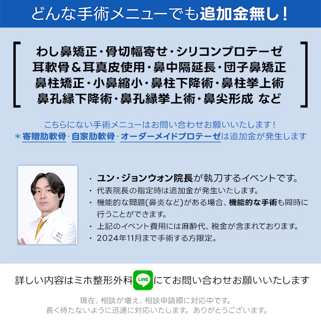 Subject | 2024年後半期イベント!! 初鼻手術285万w |